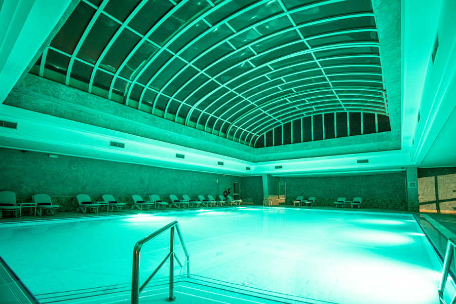 La piscine est chauffée durant toute la période de son ouverture, ce qui permet aux invités de se baigner dans une eau confortable, quelle que soit la météo. Des transats sont disposés autour de la piscine, offrant aux invités un endroit confortable pour se détendre et se dorer la pilule. Chaque jour, y compris les jours fériés, venez esquisser quelques brasses ou souscrire à un de nos cours de sport dans l'eau (aquagym ou natation).
